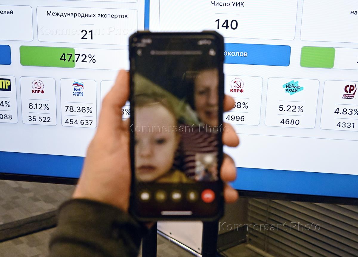 Single Voting Day (SVD)-2023. Elections to local government bodies in the Donetsk region. Genre photography. Voting data on screens in the information center of the Election Commission of the Republic.