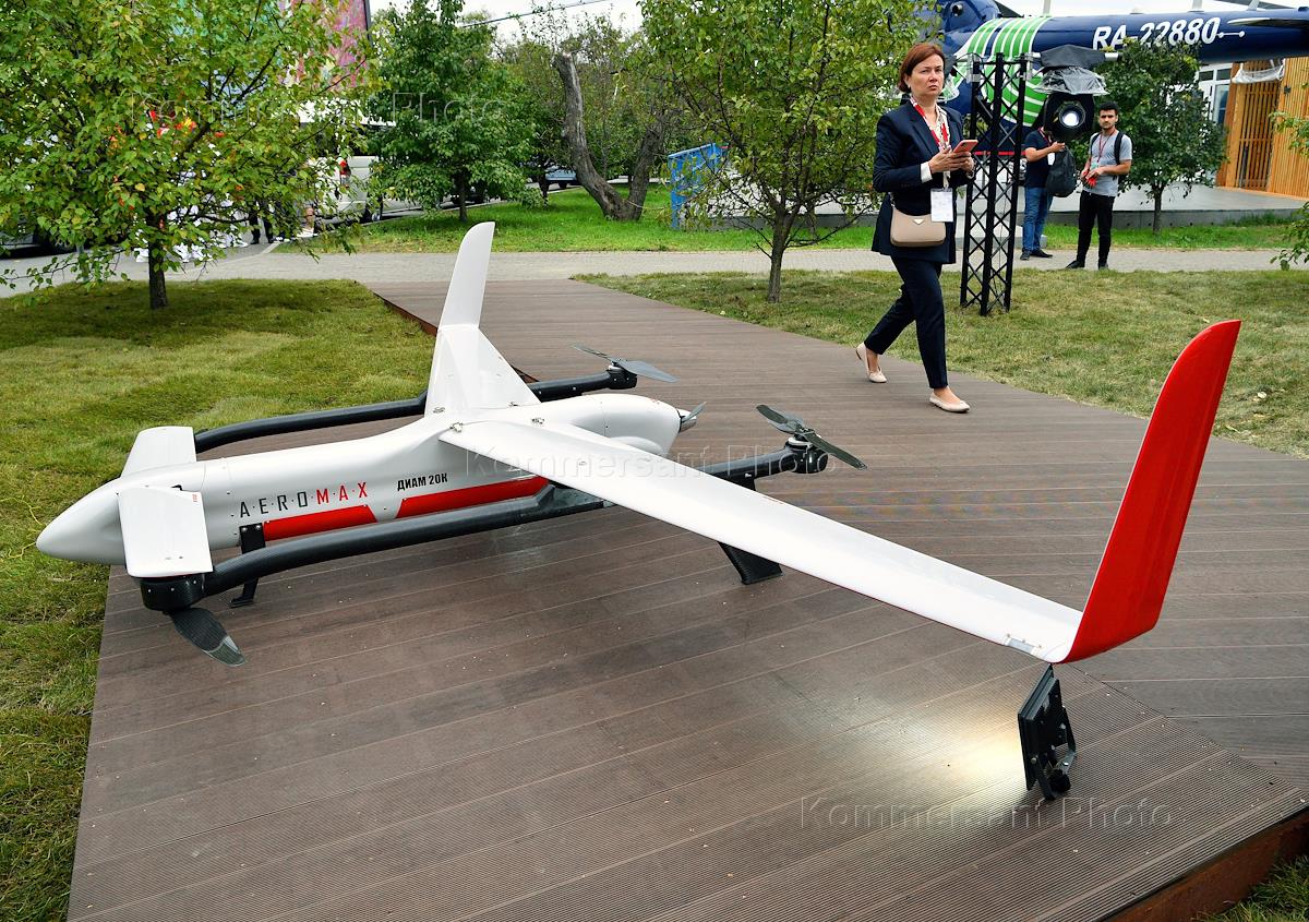Восточный экономический форум (ВЭФ) 2023 на территории Дальневосточного федерального университета (ДВФУ) на острове Русский. Беспилотный летательный аппарат (БПЛА) в вертикальным взлетом и посадкой Aeromax на выставке в рамках ВЭФ-2023.