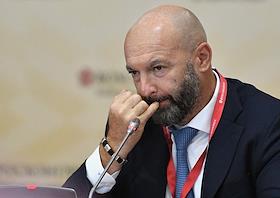 Восточный экономический форум (ВЭФ) 2023 на территории Дальневосточного федерального университета (ДВФУ) на острове Русский. Заместитель министра природных ресурсов и экологии России - руководитель Федерального агентства лесного хозяйства (Рослесхоз) Сергей Аноприенко во время заседания пленарной сессии "Сохранение и гармоничное использование хищных птиц в разных странах мира" в рамках ВЭФ-2023.