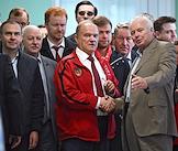 Единый день голосования (ЕДГ) 2023. Выборы мэра Москвы. Справа налево: лидер КПРФ, член комитета Государственной думы России по делам Содружества Независимых Государств, евразийской интеграции и связям с соотечественниками Геннадий Зюганов, кандидат в мэры Москвы от КПРФ, депутат Московской городской думы Леонид Зюганов и первый секретарь Московского городского отделения КПРФ, руководитель фракции КПРФ в Московской городской думе Николай Зубрилин после голосования на избирательном участке № 143 в школе № 1574.