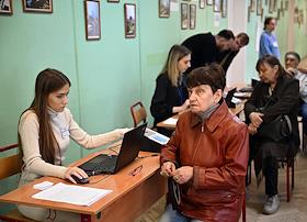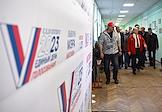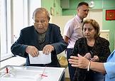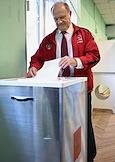 Единый день голосования. Выборы мэра Москвы. Голосование председателя ЦК КПРФ, руководителя фракции КПРФ в Государственной Думе РФ Геннадия Зюганова в Доме творчества на Миуссах.