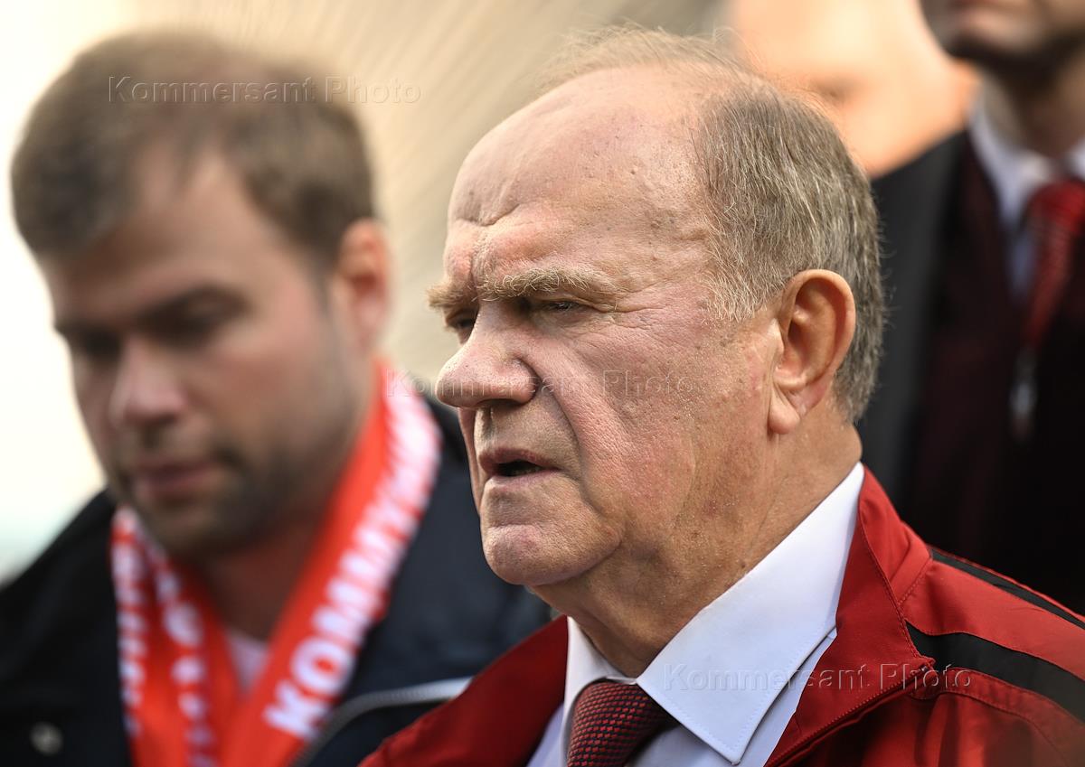 Единый день голосования (ЕДГ) 2023. Выборы мэра Москвы. Справа налево: лидер КПРФ, член комитета Государственной думы России по делам Содружества Независимых Государств, евразийской интеграции и связям с соотечественниками Геннадий Зюганов, кандидат в мэры Москвы от КПРФ, депутат Московской городской думы Леонид Зюганов и первый секретарь Московского городского отделения КПРФ, руководитель фракции КПРФ в Московской городской думе Николай Зубрилин после голосования на избирательном участке № 143 в школе № 1574.