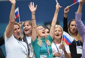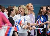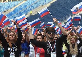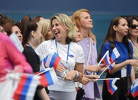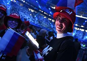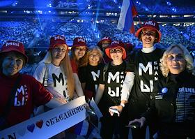 Concert of the singer SHAMAN (Yaroslav Dronov) at the Gazprom Arena stadium. Spectators during the concert.