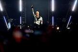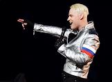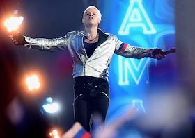 Concert of the singer SHAMAN (Yaroslav Dronov) at the Gazprom Arena stadium. Singer SHAMAN during the concert.