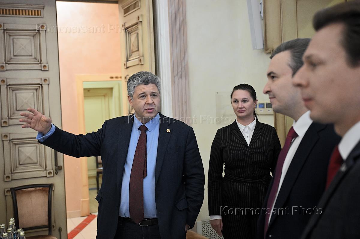 Единый день голосования (ЕДГ) 2023. Вечерний пресс-брифинг, посвященный общественному наблюдению за голосованием в Ситуационном центре по общественному контролю за голосованием в Общественной палате России. Слева направо: руководитель Координационного совета Общественной палаты России по контролю за голосованием Максим Григорьев, президент Международного форума БРИКС Пурнима Ананд и председатель Прусского общества Берлин - Бранденбург Фолькер Фридрих Карл Чапке перед началом пресс-брифинга.