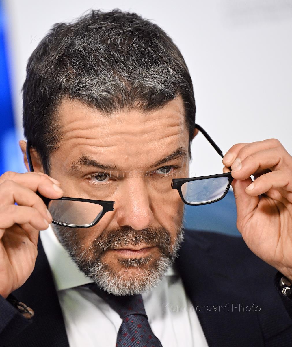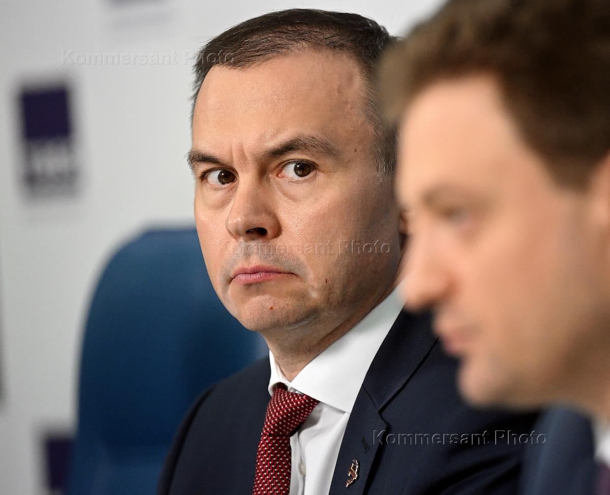Брифинг КПРФ по итогам Единого дня голосования в пресс-центре ТАСС. Заместитель председателя ЦК КПРФ Дмитрий Новиков во время брифинга.