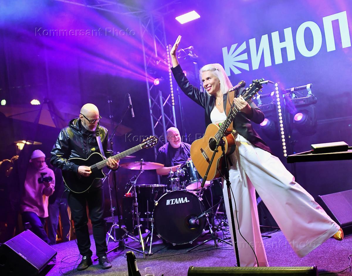 Фестиваль онлайн-кинотеатров "Новый сезон-2023" на горном курорте "Роза Хутор". Четвертый день. Вечеринка, организованная платформой "Кинопоиск", в гастро-баре "Чукотка". Певица Алена Свиридова (справа) во время выступления на вечеринке.