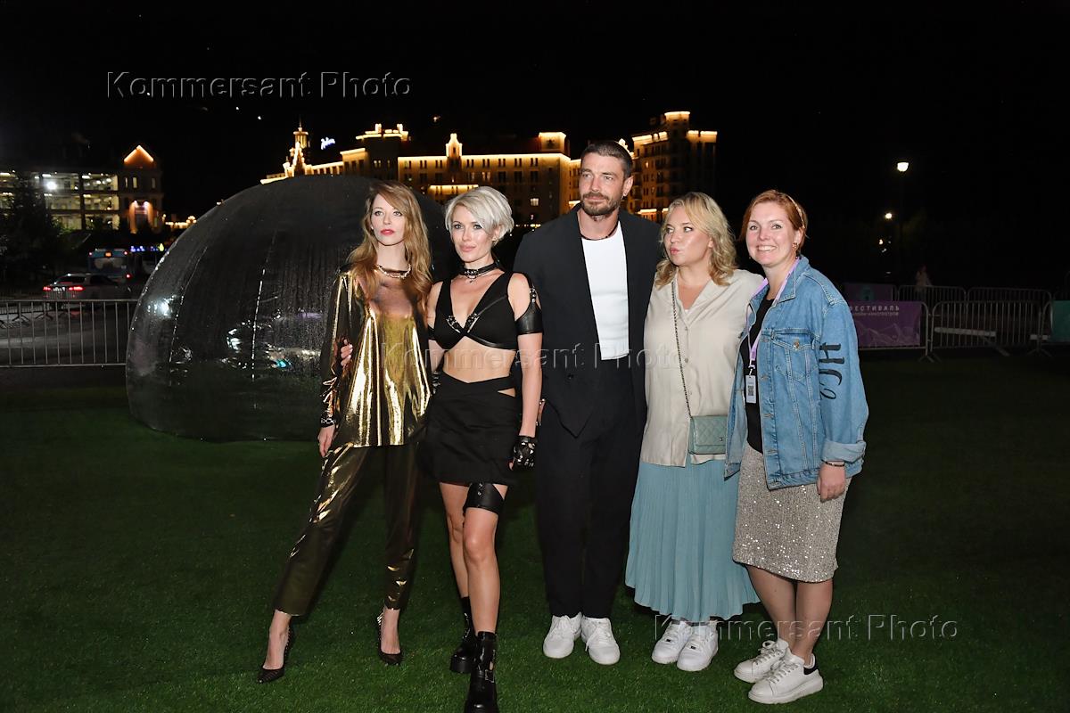 Фестиваль онлайн-кинотеатров "Новый сезон" на курорте "Роза Хутор". Слева направо: актеры Полина Маликова, Виктория Маслова, Максим Матвеев, режиссер Александр Ремизова и писатель Александр Цыпкин и директор по контенту бизнес-группы "Яндекс.Плюс" Ольга Филипук на фестивале.