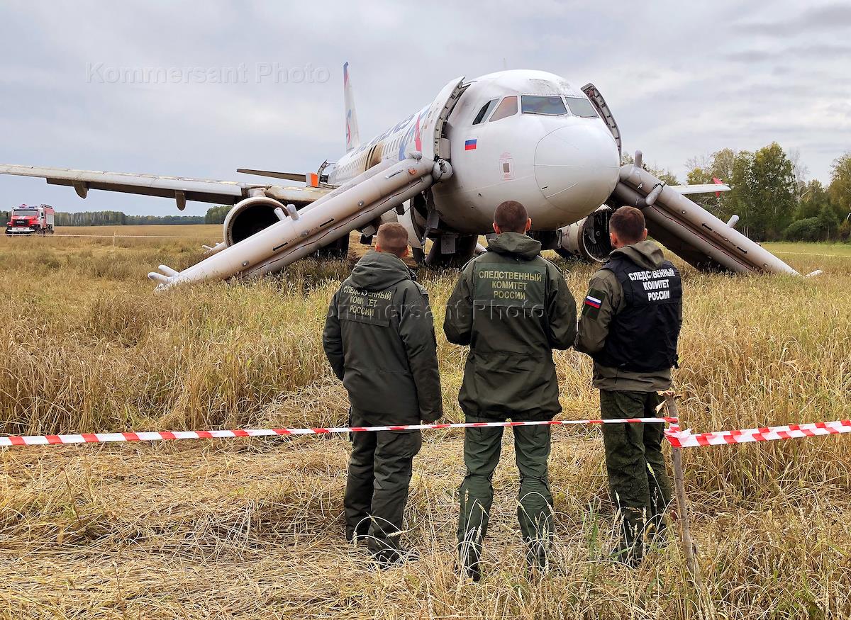 Consequences of an emergency landing of an Airbus A320 of Ural Airlines, flying from Sochi to Omsk, in a field in the Ubinsky district of the Novosibirsk region.