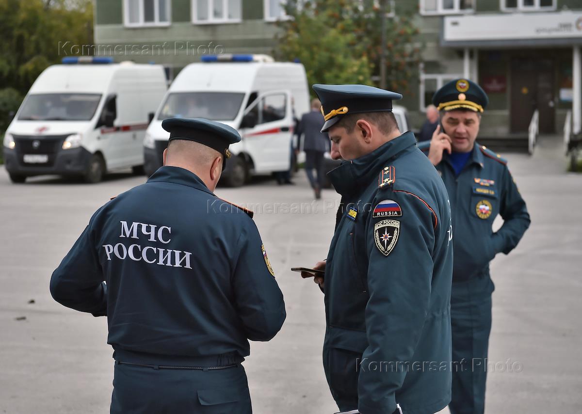 Consequences of an emergency landing of an Airbus A320 of Ural Airlines, flying from Sochi to Omsk, in a field in the Ubinsky district of the Novosibirsk region. Employees of the Russian Ministry of Emergency Situations during the boarding of plane passengers at the Ubinskoye railway station.