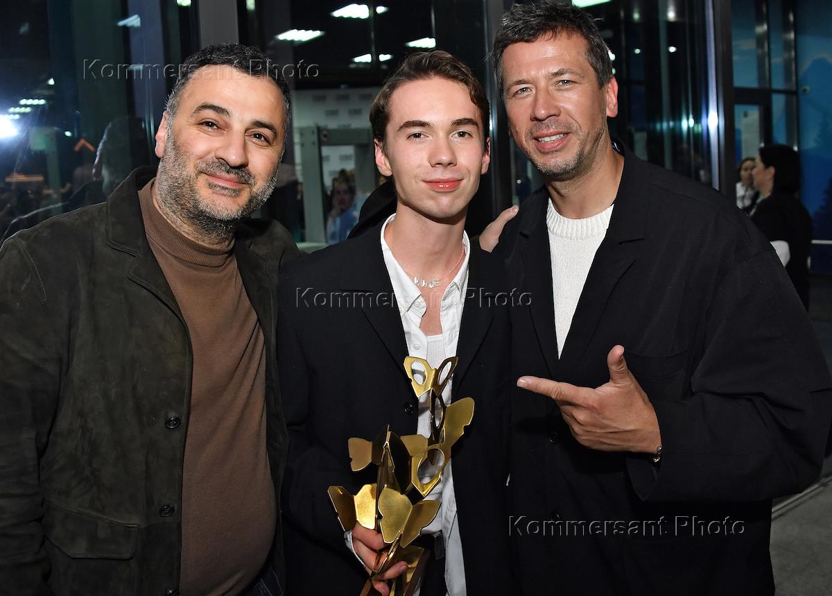 Closing ceremony of the New Season online cinema festival at the Rosa Khutor mountain resort. From left to right: actor, producer Gevond Andreasyan, actors Denis Vlasenko and Andrey Merzlikin at the ceremony.