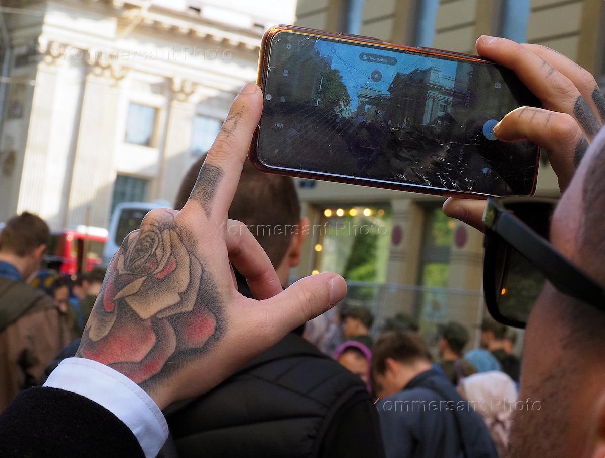 Общегородской праздничный крестный ход по Невскому проспекту от Казанского собора к площади Александра Невского. Участники крестного хода.