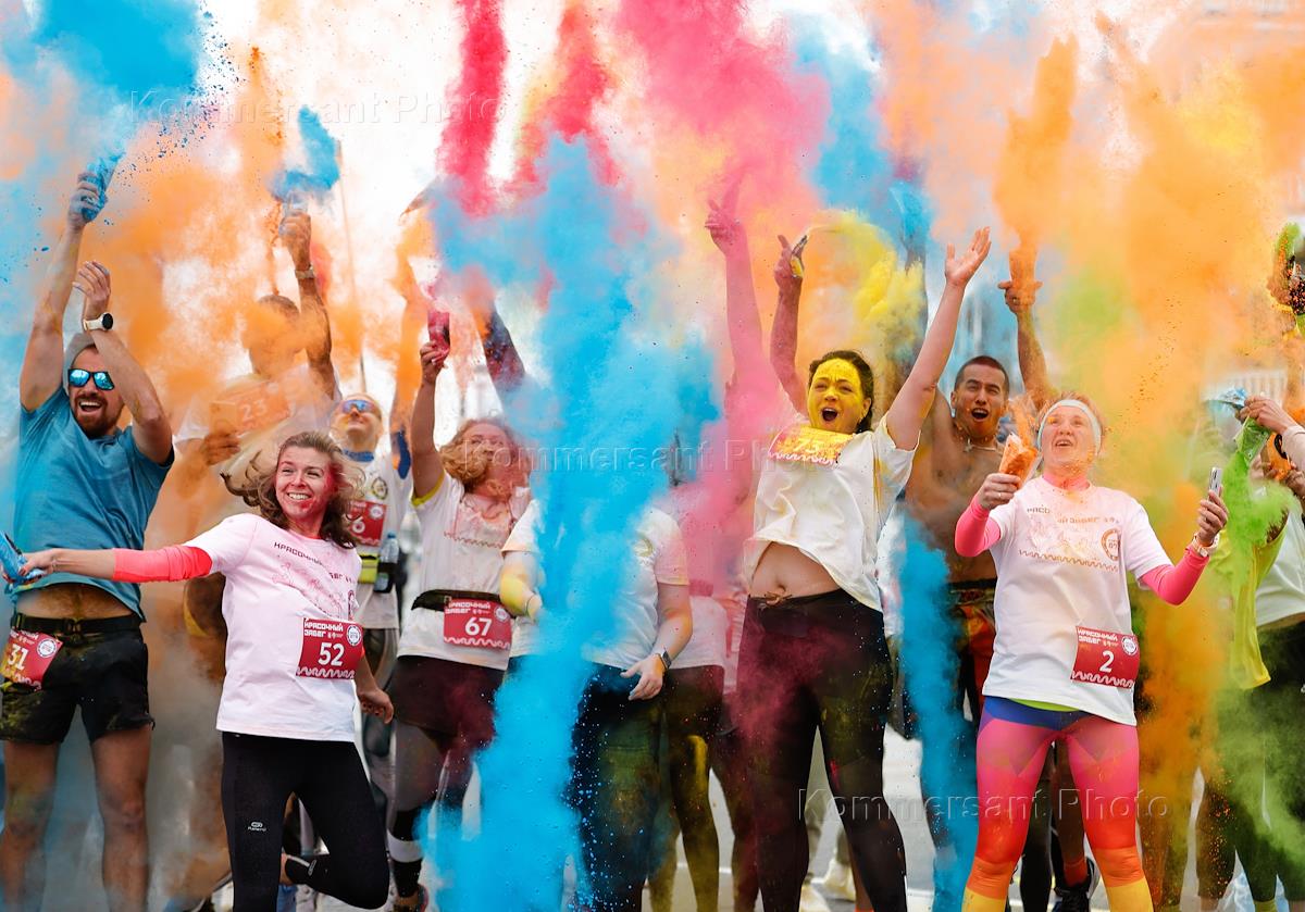 A colorful race along the embankment at the Northern River Station as part of the City Day celebrations. Participants after the race.