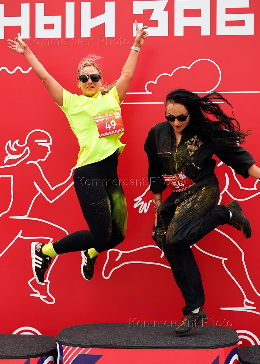 A colorful race along the embankment at the Northern River Station as part of the City Day celebrations. Participants at the finish line.