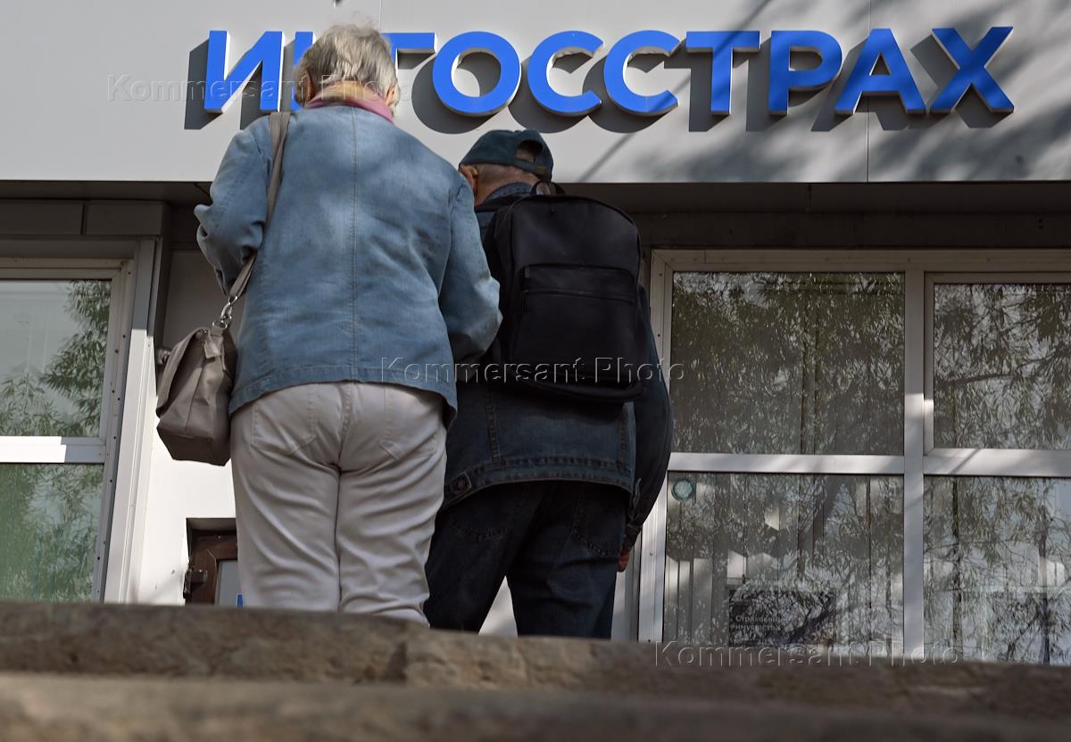 Genre photography. Signboard of the Russian insurance company "Ingosstrakh" on the office building.