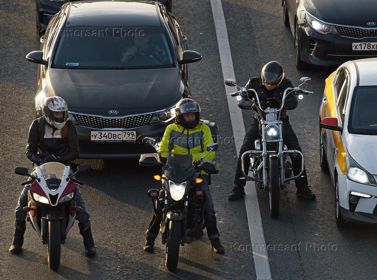 Genre photography. An employee of the "Road Patrol" mobile unit of the Traffic Management Center on the highway in the city.