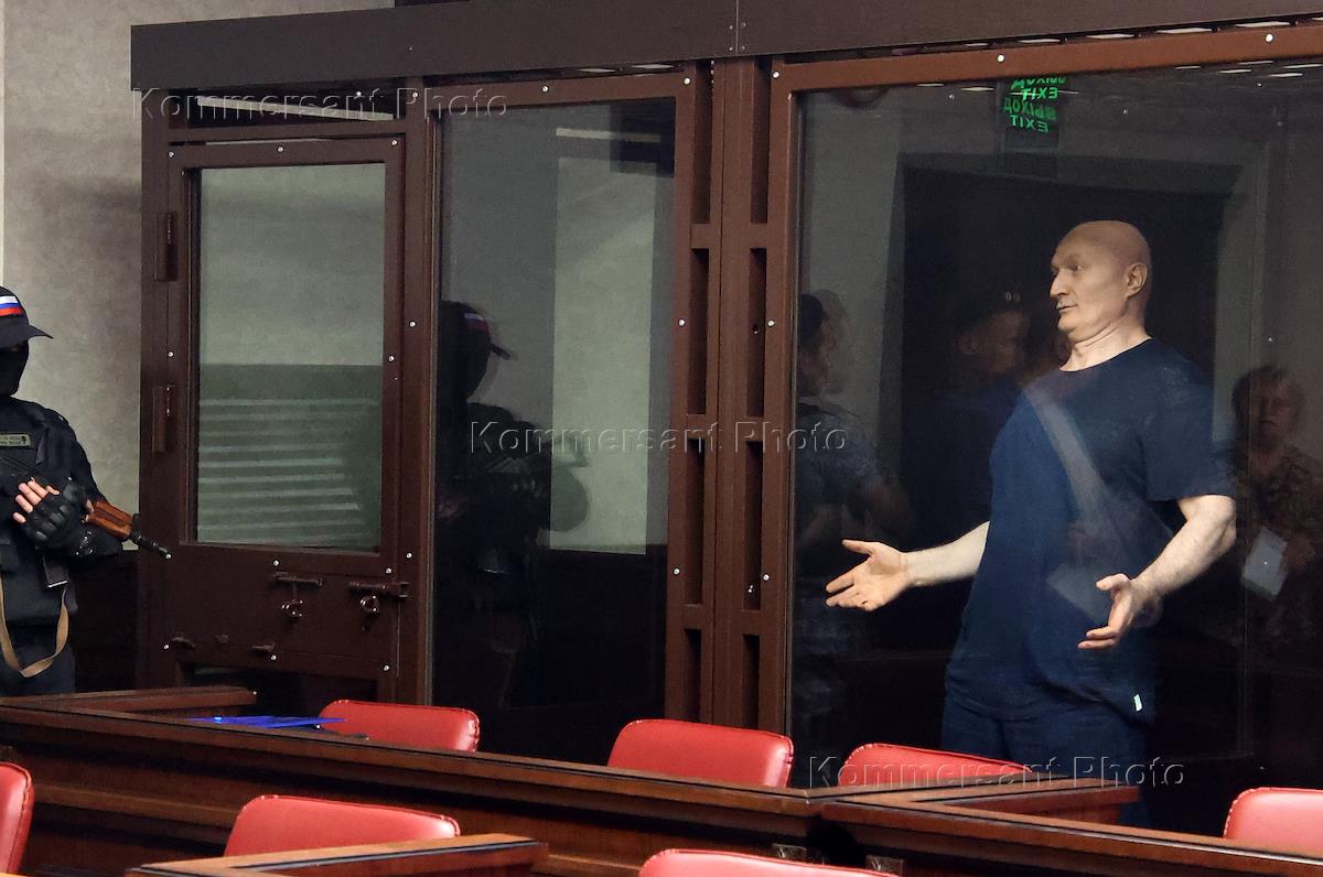 Sentencing of criminal authority Aslan Gagiev (Dzhako), accused of leading a criminal community (Part 1 of Article 210 of the Criminal Code of the Russian Federation), creating three gangs (Part 1 of Article 209 of the Criminal Code of the Russian Federation), murdering more than two persons (Part 2 of Art. 105 of the Criminal Code of the Russian Federation), as well as in illegal arms trafficking (Part 3 of Article 222 of the Criminal Code of the Russian Federation), in the Southern District Military Court. Criminal authority Aslan Gagiev during the court hearing.