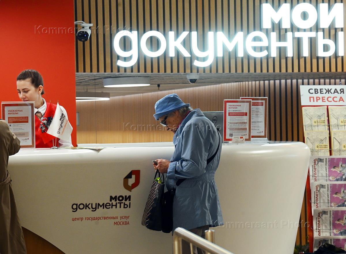 Работа флагманского офиса Многофункционального центра (МФЦ) "Мои документы" в торгово-развлекательном центре "Метрополис" на Ленинградском шоссе. Жанровая фотография.