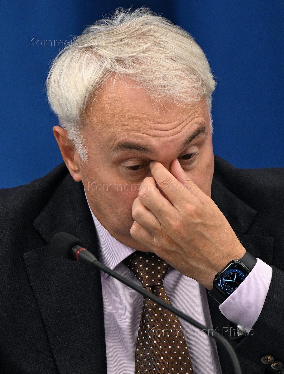 A joint meeting of the Bureau of the Supreme Council and the General Council of the United Russia party, dedicated to the results of the Single Voting Day 2023 in the Central Executive Committee of the party. Head of the United Russia faction in the State Duma of Russia Vladimir Vasilyev (center) before the start of the meeting.
