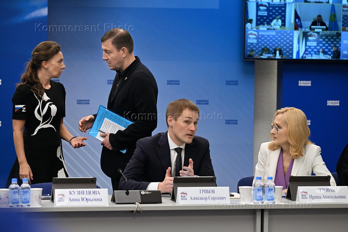 A joint meeting of the Bureau of the Supreme Council and the General Council of the United Russia party, dedicated to the results of the Single Voting Day 2023 in the Central Executive Committee of the party. From left to right: Deputy Chairman of the State Duma (State Duma) of Russia Anna Kuznetsova, First Deputy Chairman of the Federation Council of Russia, Secretary of the General Council of the United Russia party Andrei Turchak, Deputy Chief of Staff of the Russian Government Alexander Gribov and Deputy Chairman of the State Duma of Russia Irina Yarovaya.