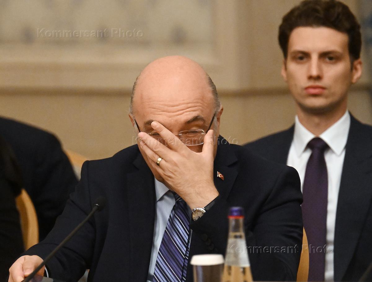Round table meeting on resolving the Ukrainian crisis at the President Hotel. Ambassador Extraordinary and Plenipotentiary of Turkey to Russia Mehmet Samsar (left) during the meeting.