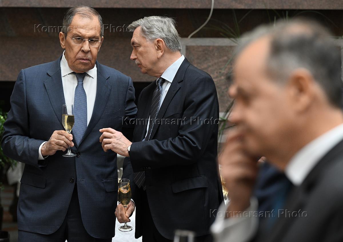 Церемония открытия выставки архивных документов, приуроченной к 50-летию военного государственного переворота в Республики Чили, в корпусе 1 Министерства иностранных дел (МИД) России. Посол Чили в России Рауль Эскобар Марин (слева) и министр иностранных дел России Сергей Лавров (справа) на церемонии.