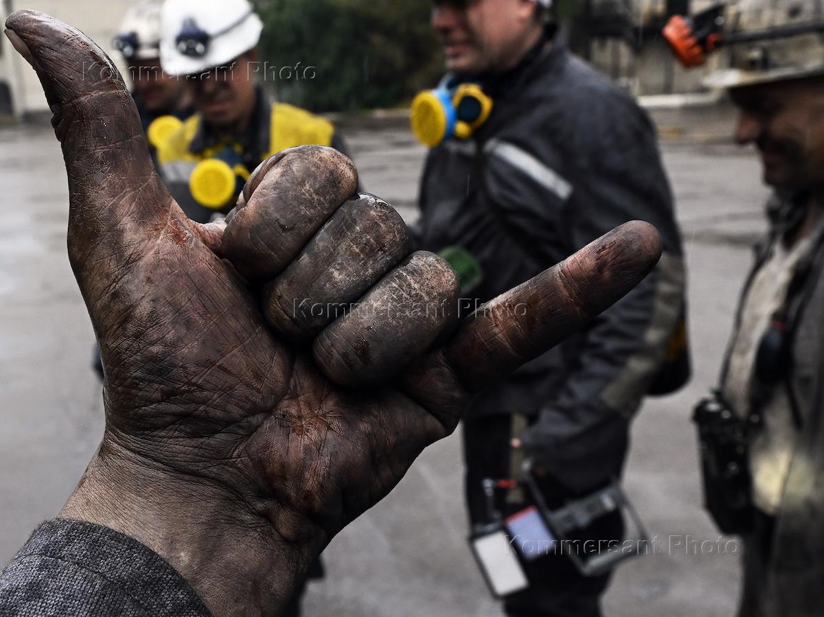 Ситуация в Донецкой Народной Республике (ДНР). Работа угольной шахты "Холодная Балка" Государственного унитарного предприятия ДНР "Макеевуголь". Шахтеры во время добычи угля.