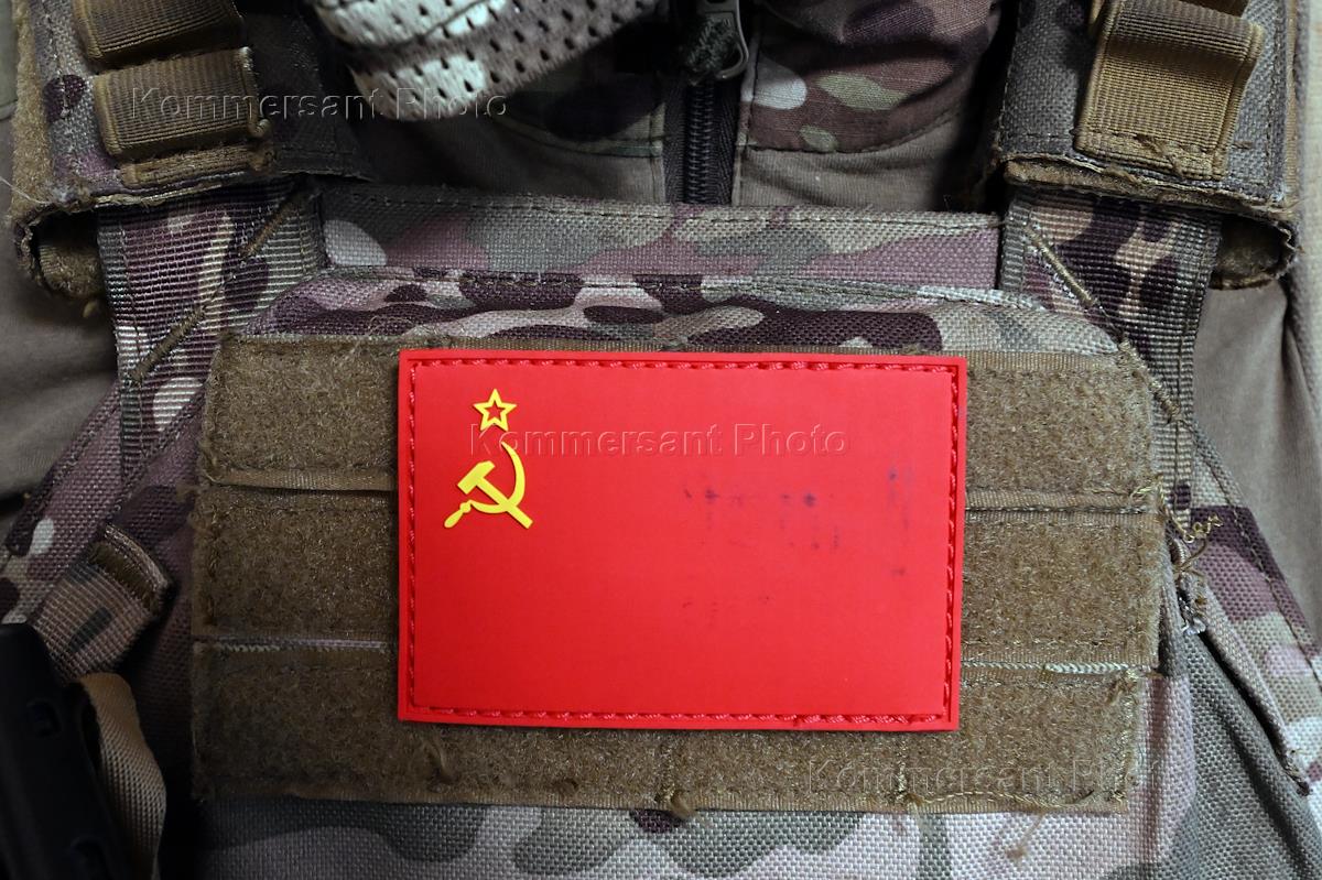 Genre photography. Patch in the form of the USSR flag on military clothing.