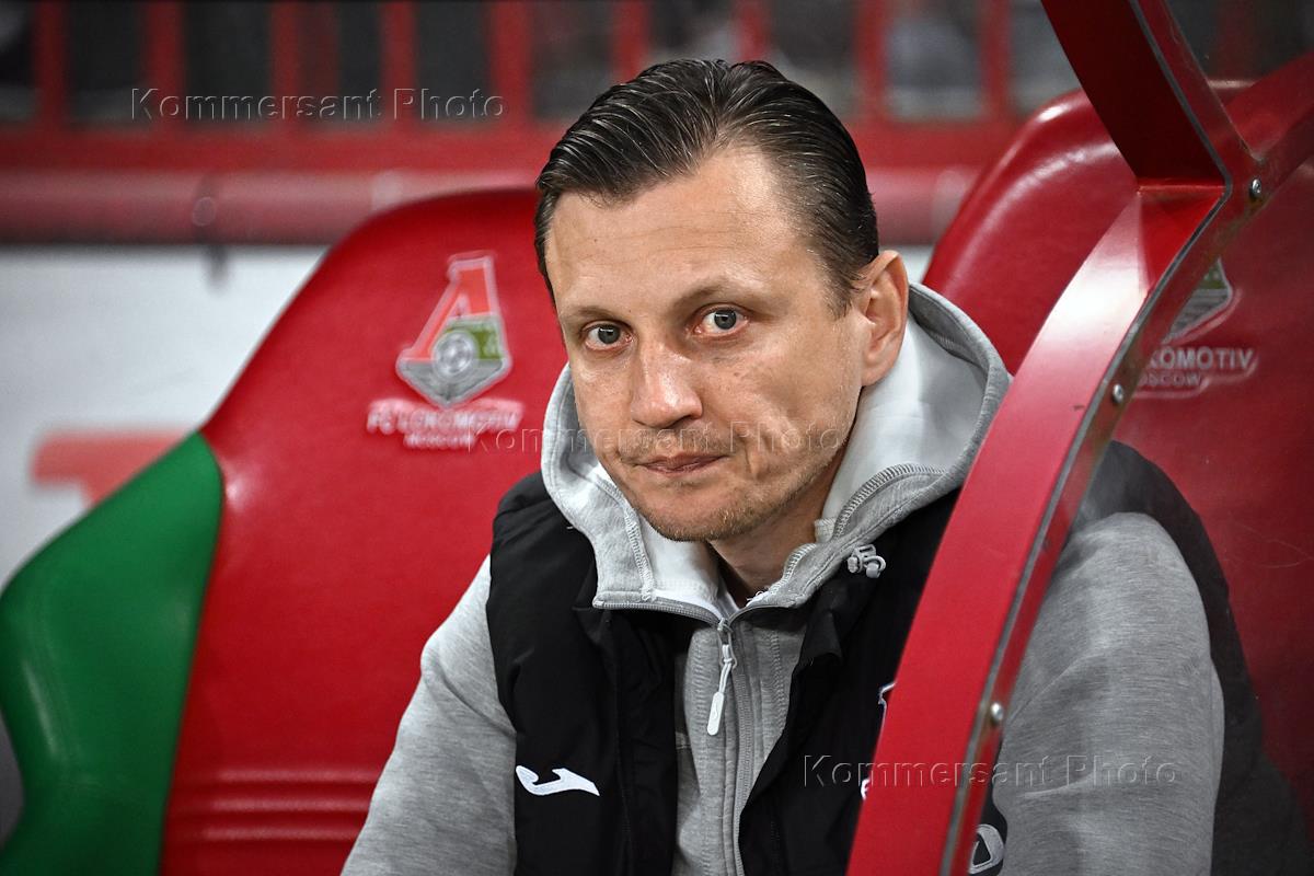 Russian Premier League (RPL). Russian Football Championship 2023/2024. Eighth round. Match between the teams "Lokomotiv M" (Moscow) - "Orenburg" (Orenburg) at the RZD Arena stadium. Head coach of the Lokomotiv M team Mikhail Galaktionov during the match.