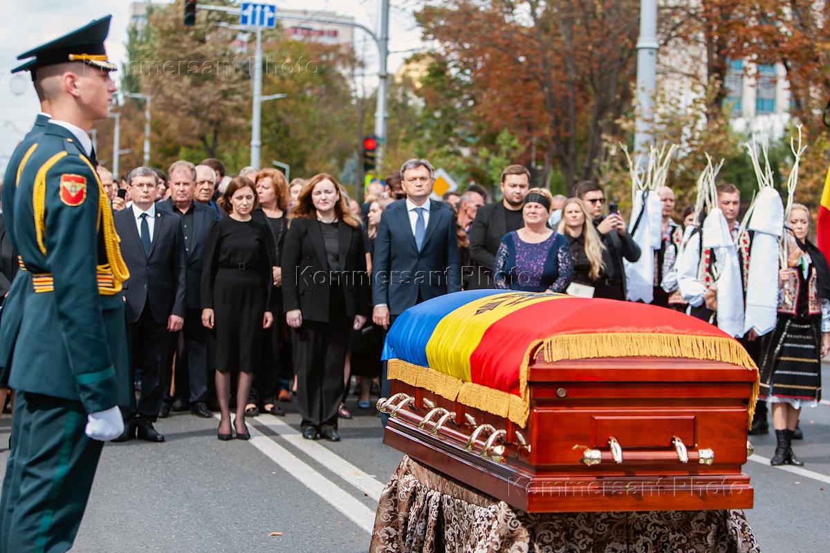 Funeral of the first president of Moldova, Mircea Snegur. Farewell ceremony.