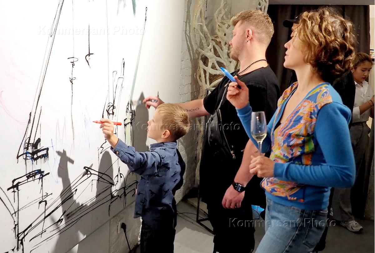 Opening ceremony of the exhibition “ne paradny” at the Beriozka art gallery. The artists participating in the exhibition paint the overall picture.