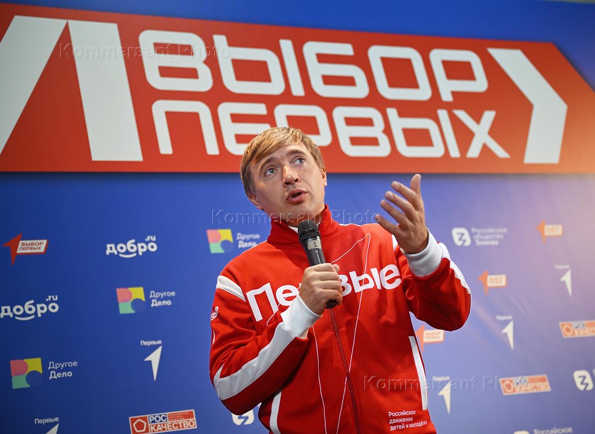 Launch ceremony of the All-Russian project "Choice of the First" at the Moscow Planetarium. Deputy Chairman of the Russian State Duma Committee on Youth Policy Mikhail Kiselev (right) during the ceremony.