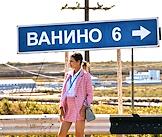 Виды поселка сельского типа Токи в Ванинском районе Хабаровского края. Сортировочная станции "Парк Токи". Жанровая фотография. Девушка рядом с дорожным указателем "Ванино".