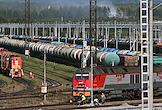 Виды поселка сельского типа Токи в Ванинском районе Хабаровского края. Жанровая фотография. Грузовые составы на сортировочной станции "Парк Токи".