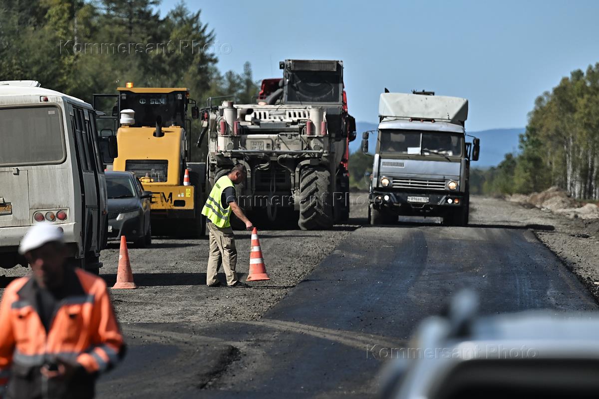 Участок Федеральной автомобильной дороги А-376 "Хабаровск - Лидога - Ванино - Комсомольск-на-Амуре". Ремонтные работы на трассе.