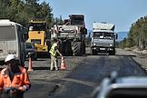 Участок Федеральной автомобильной дороги А-376 "Хабаровск - Лидога - Ванино - Комсомольск-на-Амуре". Жанровая фотография. Автомобили на ремонтируемом участке трассы.