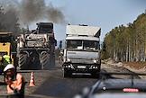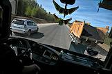 Участок Федеральной автомобильной дороги А-376 "Хабаровск - Лидога - Ванино - Комсомольск-на-Амуре". Жанровая фотография. Автомобили на трассе.