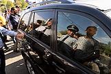 Ситуация в Ереване после обострения ситуации в Нагорном Карабахе. Протестная акция с требованием к правительству Армении признать независимость Карабаха и отставки премьер-министра Никола Пашиняна. Мужчина с маленьким ребенком на руках на фоне сотрудников полиции в оцеплении у Дома правительства Армении на площади Республики. 19 сентября Министерство бороны Азербайджана сообщило, что Баку начал "антитеррористические мероприятия" локального характера в Карабахе для восстановления конституционного строя.