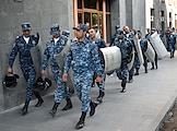 Ситуация в Ереване после обострения ситуации в Нагорном Карабахе. Протестная акция с требованием к правительству Армении признать независимость Карабаха и отставки премьер-министра Никола Пашиняна. Сотрудники полиции во время дежурства на акции у Дома правительства Армении на площади Республики. 19 сентября Министерство бороны Азербайджана сообщило, что Баку начал "антитеррористические мероприятия" локального характера в Карабахе для восстановления конституционного строя.