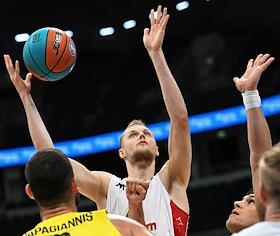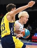 Суперкубок Единой лиги ВТБ на кубок имени А.Я.Гомельского. Матч между командами МБА (Россия) — "Фенербахче" (Турция) в спортивном комплексе "ВТБ Арене". Игрок команды МБА Евгений Минченко (в центре) во время матча.
