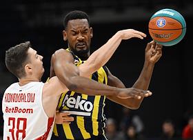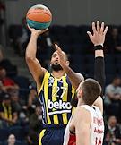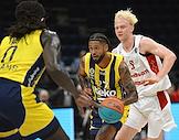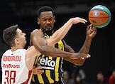 Суперкубок Единой лиги ВТБ на кубок имени А.Я.Гомельского. Матч между командами МБА (Россия) — "Фенербахче" (Турция) в спортивном комплексе "ВТБ Арене". Игрок команды "Фенербахче" Джонатан Мотли (слева) во время матча.