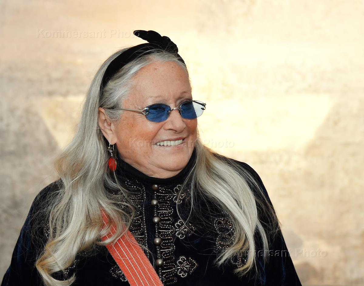 Церемония открытия московской галереи современного искусства Askeri Gallery на Патриарших прудах. Президент благотворительного фонда "Русский силуэт" Татьяна Михалкова на церемонии.