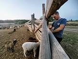 Реабилитационный центр для наркозависимых "Андреевская слобода". Пациент центра Сергей на пастбище для домашнего скота.