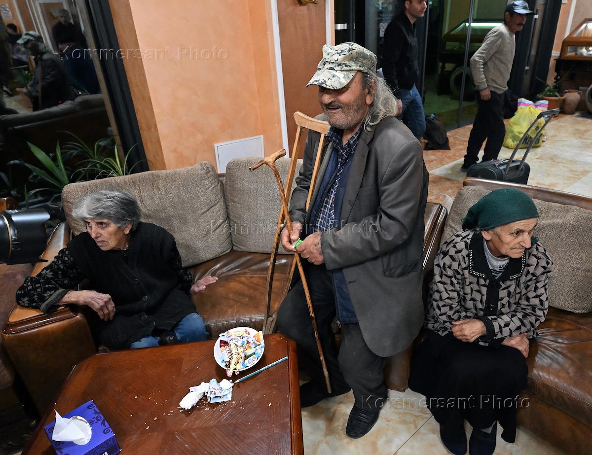 Ситуация в Сюникской области Армении после обострения ситуации в Нагорном Карабахе. Размещение беженцев из Нагорного Карабах в пункте временного размещения для жителей Нагорного Карабаха в гостинице "Горис".