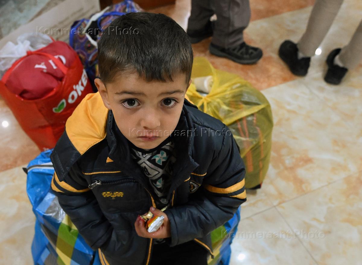 Ситуации в Сюникской области Армении после обострения ситуации в Нагорном Карабахе. Центр в селе Корнидзор Сюникской области для преодоления гуманитарного кризиса в Нагорном Карабахе. Прибытие первых беженцев из Нагорного Карабаха в сопровождении колонны российских миротворцев.