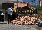 Виды Армении. Город Горис. Жанровая фотография. Придорожная торговля тыквами, арбузами и дынями.