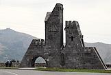 Виды Армении. Жанровая фотография. Дорожные работы. Манекен в спецодежде дорожного рабочего у перекрытого шоссе.