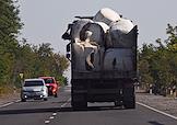 Виды Армении. Жанровая фотография. Комбайн "Нива" на шоссе.