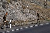 Виды Армении. Жанровая фотография. Армянские военнослужащие у шоссе.