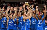 Суперкубок Единой лиги ВТБ на кубок имени А.Я.Гомельского. Финал. Матч между командами "Локомотив-Кубань" (Краснодар) - "Зенит" (Санкт-Петербург) с спорткомплексе "ВТБ Арене". Игроки команды "Зенит" во время церемонии награждения после матча.